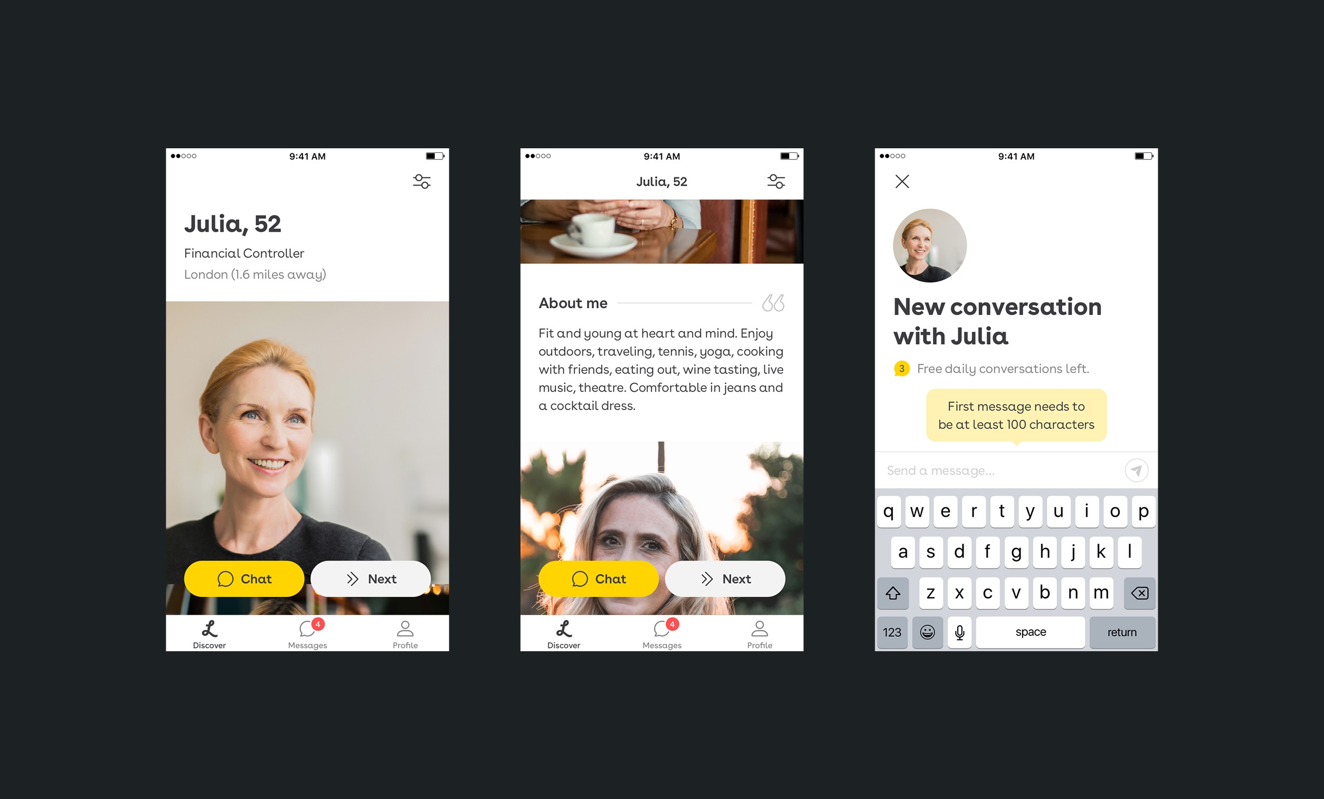 Goal: Design an app that resonates emotionally with the over-50s audience by offering elegance, clarity, and a sense of community, bridging digital dating with a mature and intuitive experience.