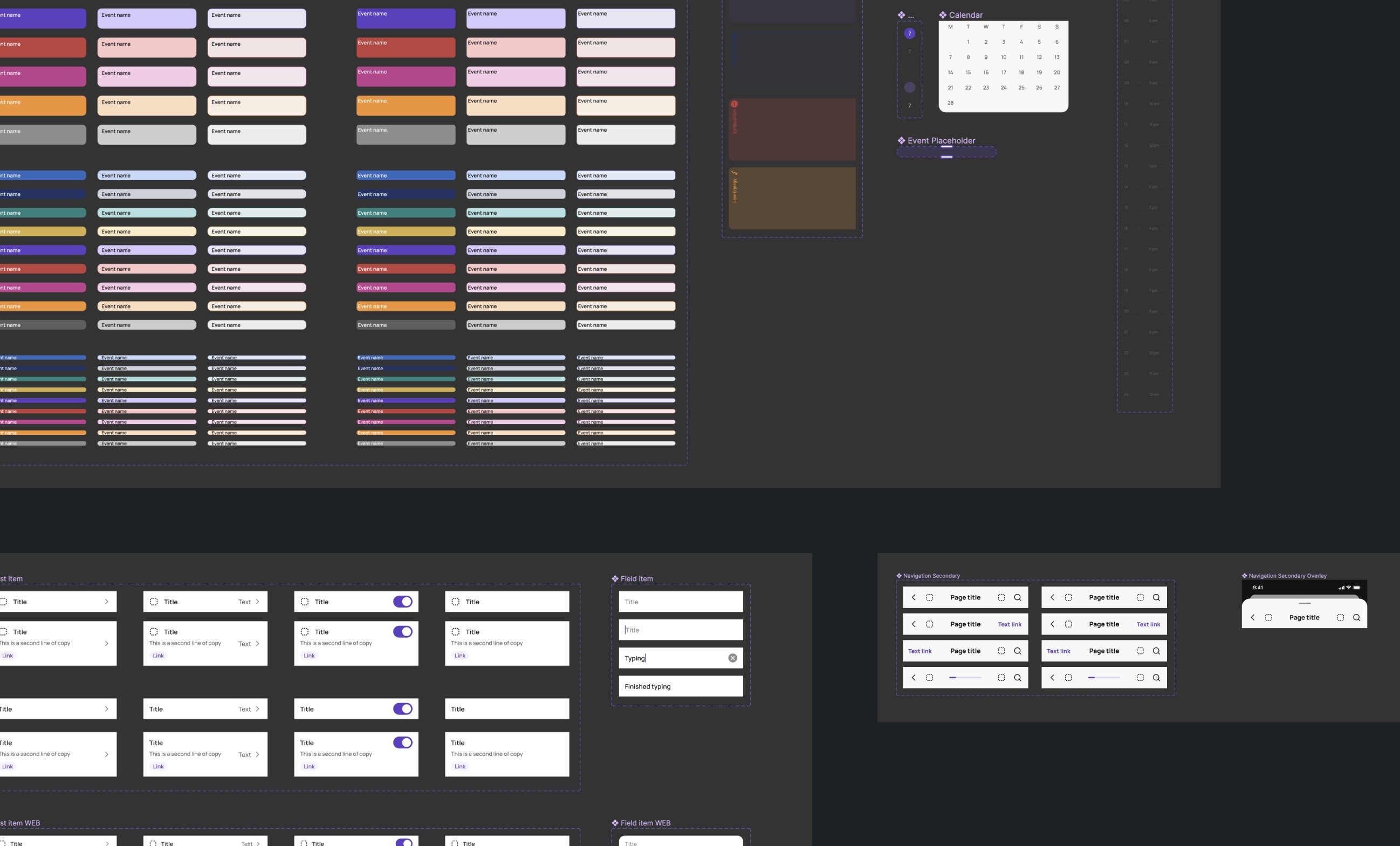 Components like insight cards, event modals, and alert banners—reusable across the app and marketing site.